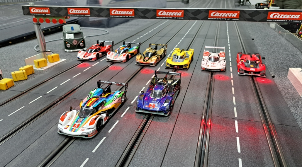 Endlich wurden die Räume der Slotfreunde wieder anständig beheizt, daher haben wir uns auch direkt in das heiße 2. Rennen der LMP Zwerge im Maßstab 1/32 gestürzt.